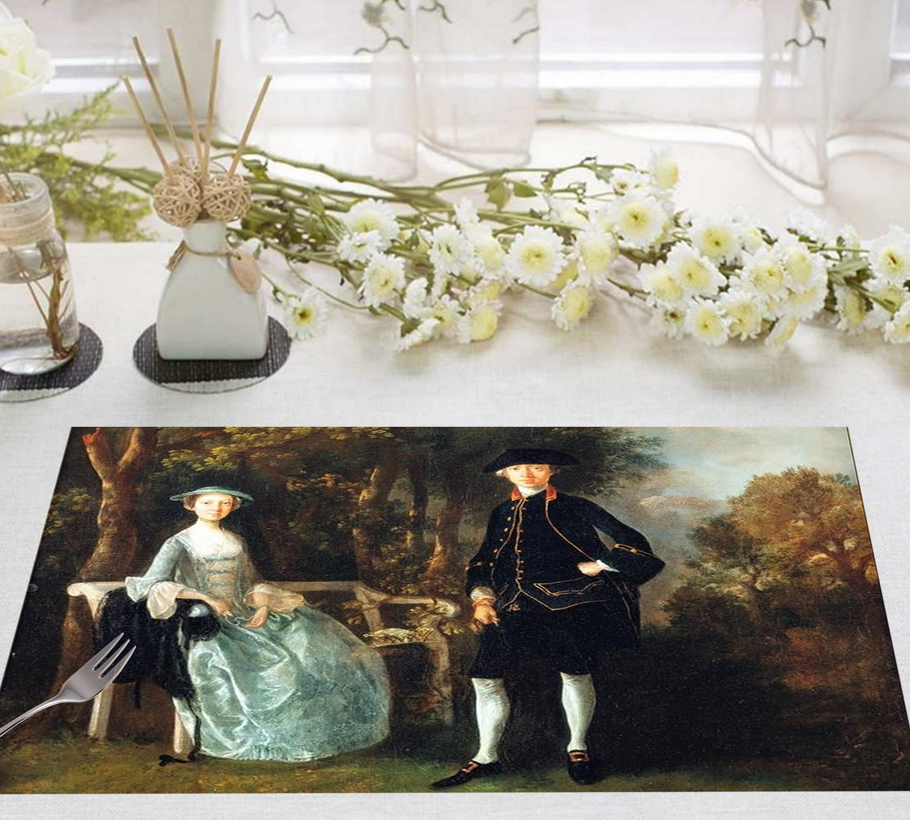 Prêt à décorer votre table avec ce chef-d'œuvre du XVIIIe siècle ? Commandez ce set de table "Lady Lloyd et son Fils" dès aujourd'hui. Visitez notre boutique pour explorer l'ensemble de nos 700+ créations uniques et trouver d'autres thèmes classiques et romantiques !